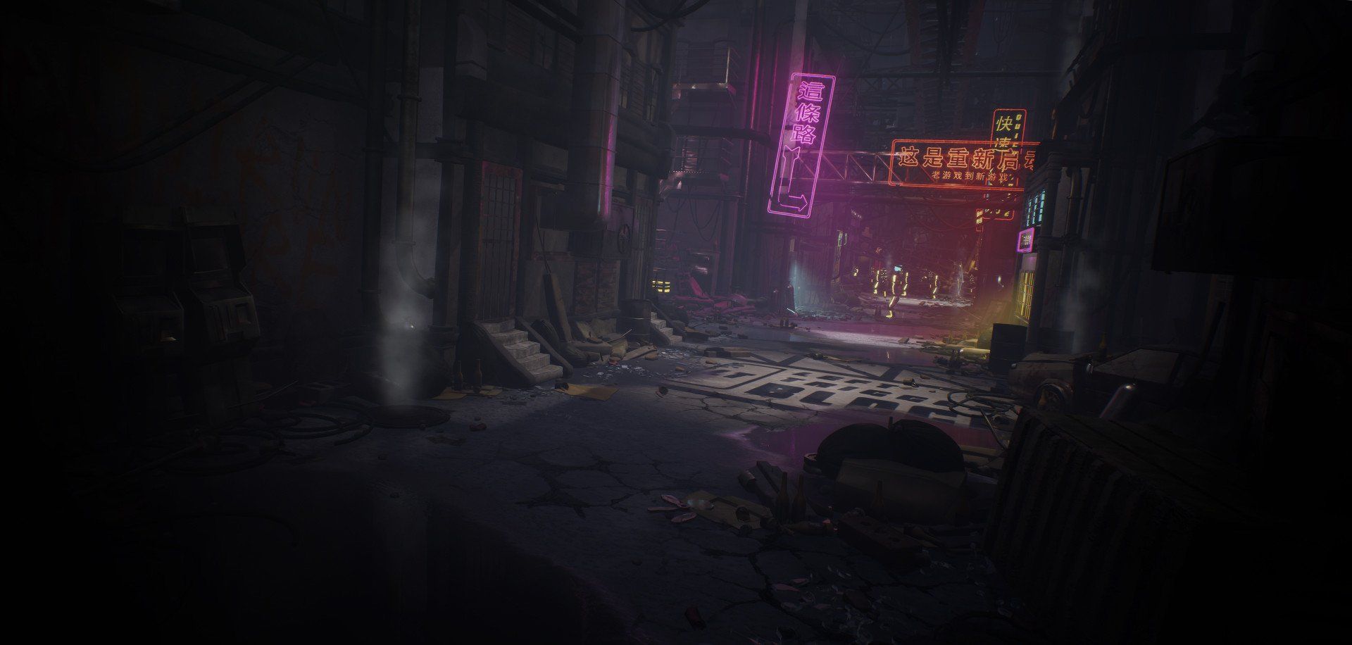 All of the architecture is modular, I created many different parts and assembled the bases of the facades in Unreal Blueprints to create the buildings based on the blocking by Adrien Paquet-Brunella who then finished up the level art.
